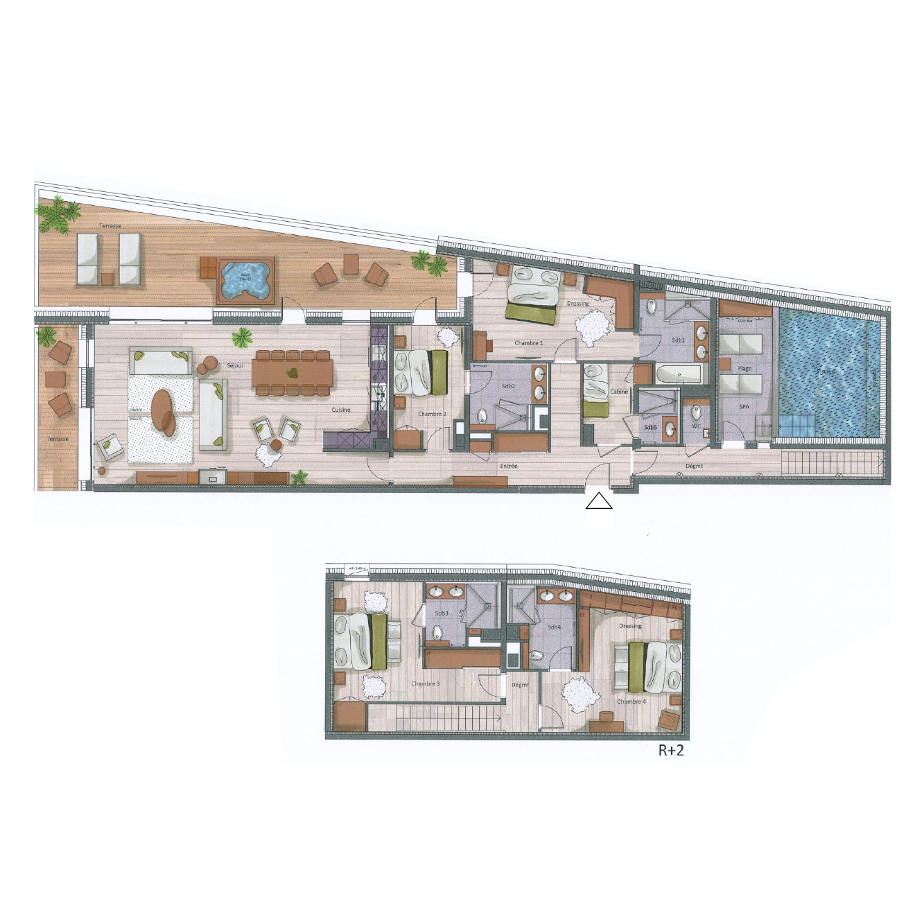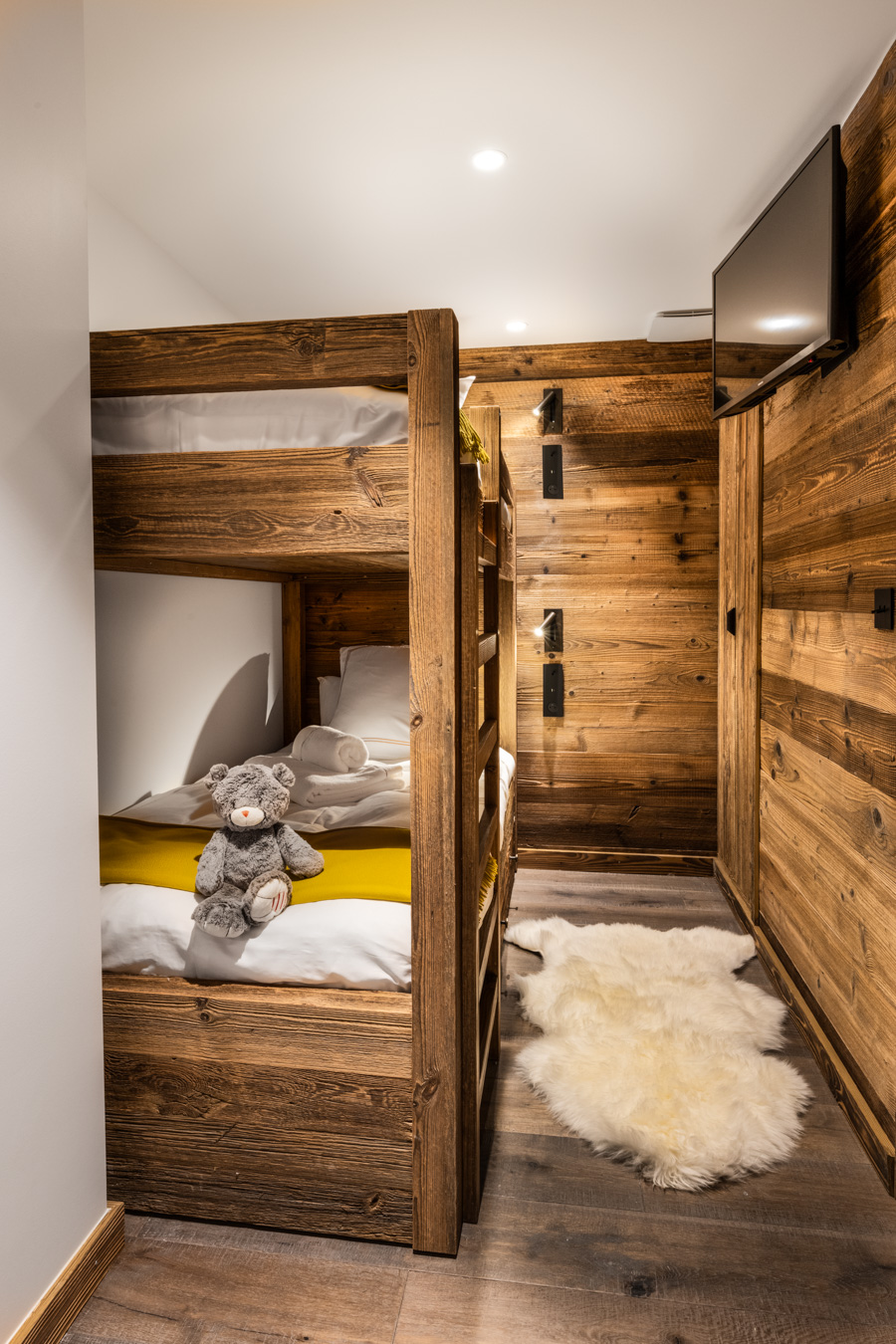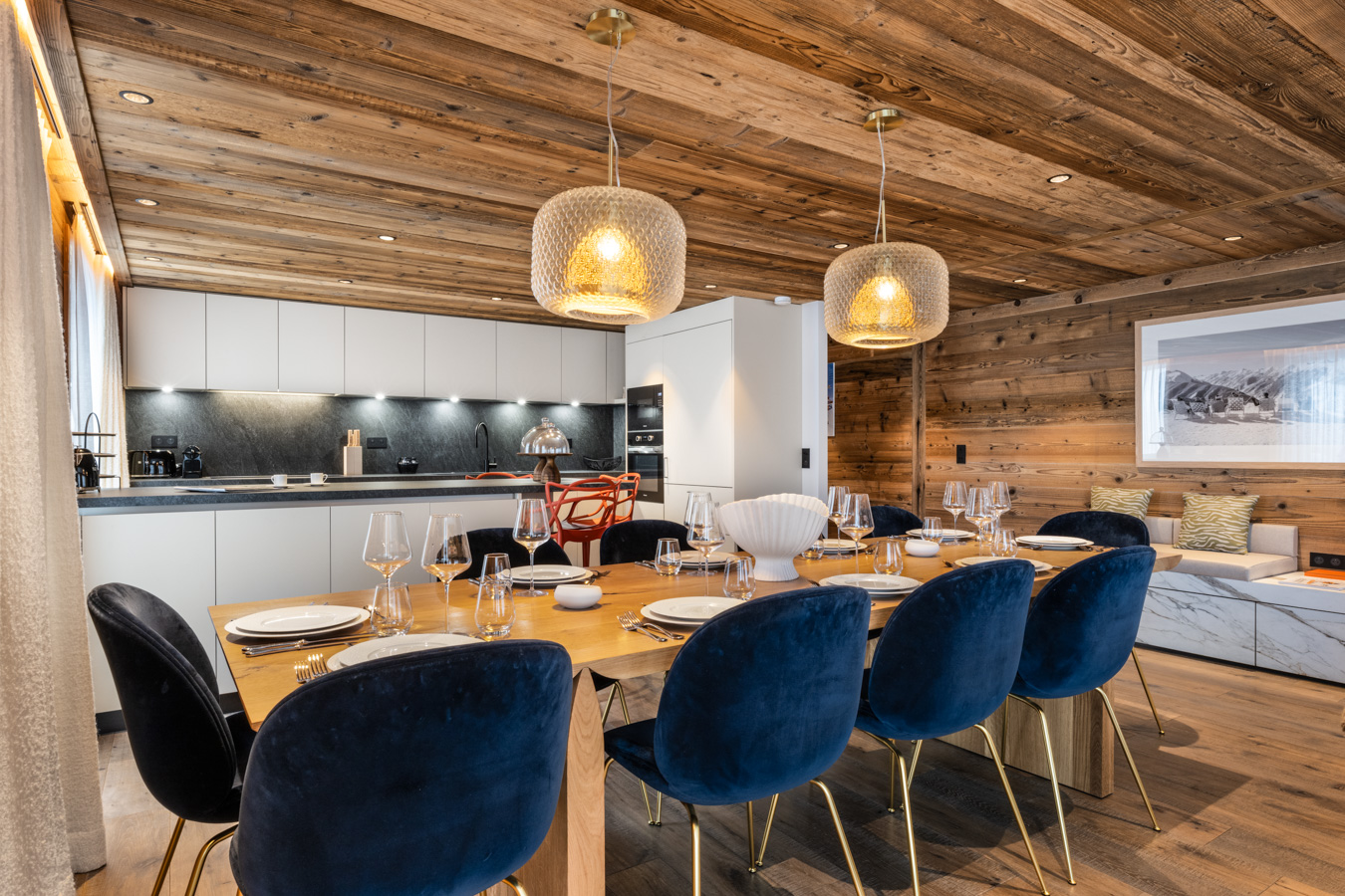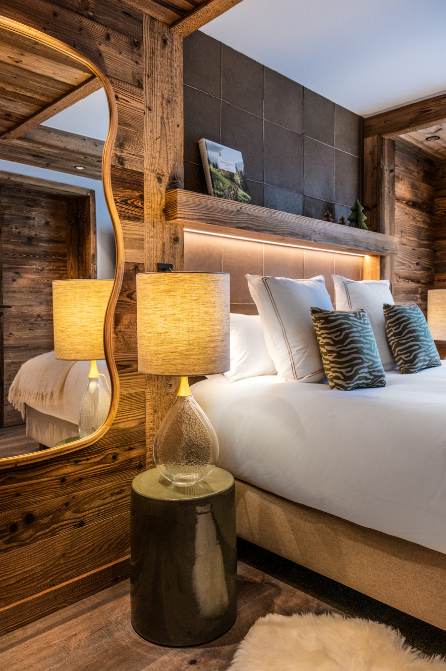 Entrez dans un univers montagne chic où le vieux bois côtoie des céramiques aux détails de marbre pour créer un contraste harmonieux et élégant. Dès votre arrivée dans la Suite n°1, vous serez enveloppé par une décoration chaleureuse et raffinée qui s'étend sur deux niveaux en duplex.